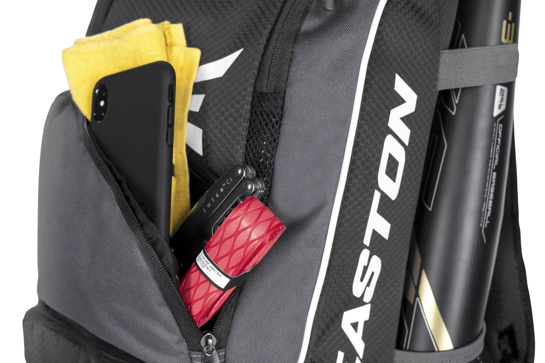 Players will be game ready with Easton’s® new Game Ready Backpack, featuring a vented main compartment, a separate vented shoe compartment and 2 side mesh pockets to hold bats and/or water bottles. The front pocket keeps personal items easily accessible and the padded back and should straps keep players comfortable on game day.